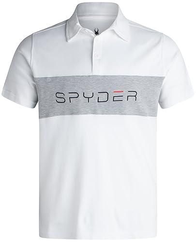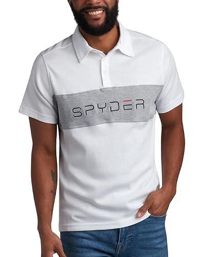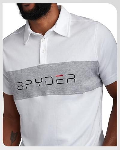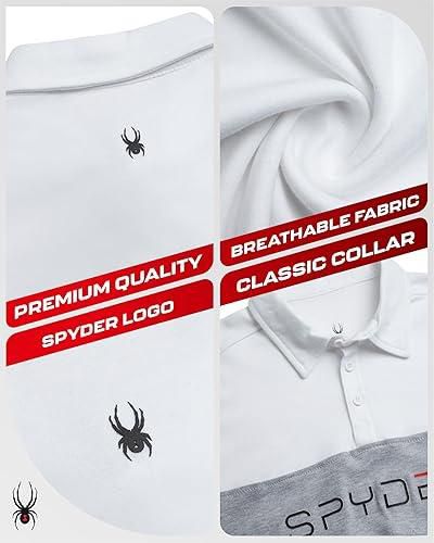 Spyder Mens Polo Shirts – Soft Breathable Cotton Casual Short Sleeve Polo Shirt – Collared Golf Shirts for Men – Color White Colorblock – Size Large